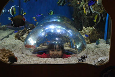在水族館裡,Titi幾乎都是我扛著,開玩笑,Titi已經19磅了呢!我這樣扛著他,等於扛著一袋米(20 lbs) 在逛水族館耶!!!